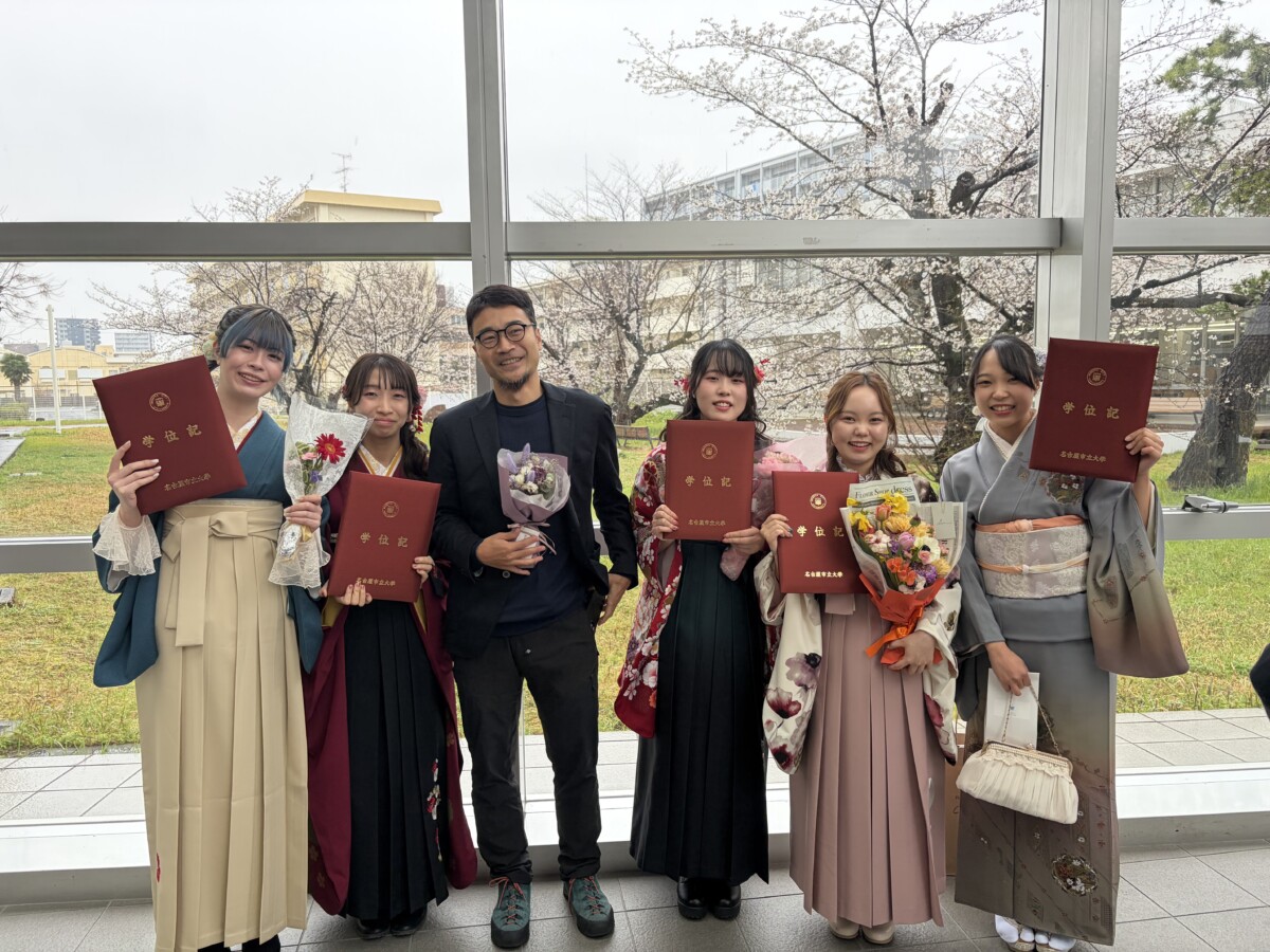 去る3月25日は、あいにくの雨の中の卒業式でしたが、無事に研究室第13期の学生5人(修士:加賀美果歩、学部:原田和奈、肥後琴楓、牧野内柚香、宮本陽菜)の卒業を見届けることができました。恒例の屋外撮影はできなかったけれど、本当に晴れがましく気持ちの良い時間が流れていて、やっぱり卒業式はいいもんだ。もう入社式も終わっているであろうこのタイミングでなんなのだけれど、あらためて卒業おめでとう。これからますます楽しくなる人生を応援しています。